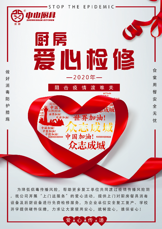 目前正值各行業(yè)復(fù)產(chǎn)復(fù)工之際,疫情防控也進(jìn)入到最吃緊、最關(guān)鍵的時(shí)期。許多機(jī)關(guān)單位、復(fù)工待復(fù)工企業(yè)、學(xué)校等對(duì)食堂的餐具消毒產(chǎn)品是否能100%消毒殺菌而產(chǎn)生疑慮,甚至為后廚設(shè)備故障無(wú)人跟進(jìn)、上門(mén)維護(hù)無(wú)人問(wèn)津而煩惱。為降低病毒傳播風(fēng)險(xiǎn),幫助更多復(fù)工單位共同渡過(guò)疫情傳播風(fēng)險(xiǎn)期,我公司開(kāi)展“上門(mén)送服務(wù)”的愛(ài)心活動(dòng),提供上門(mén)對(duì)廚房餐具消毒設(shè)備及后廚設(shè)備進(jìn)行免費(fèi)檢修服務(wù),為企業(yè)單位安全復(fù)工復(fù)產(chǎn)、學(xué)校開(kāi)學(xué)提供硬件保障,力求讓大家使用安心,就餐放心,維保省心!