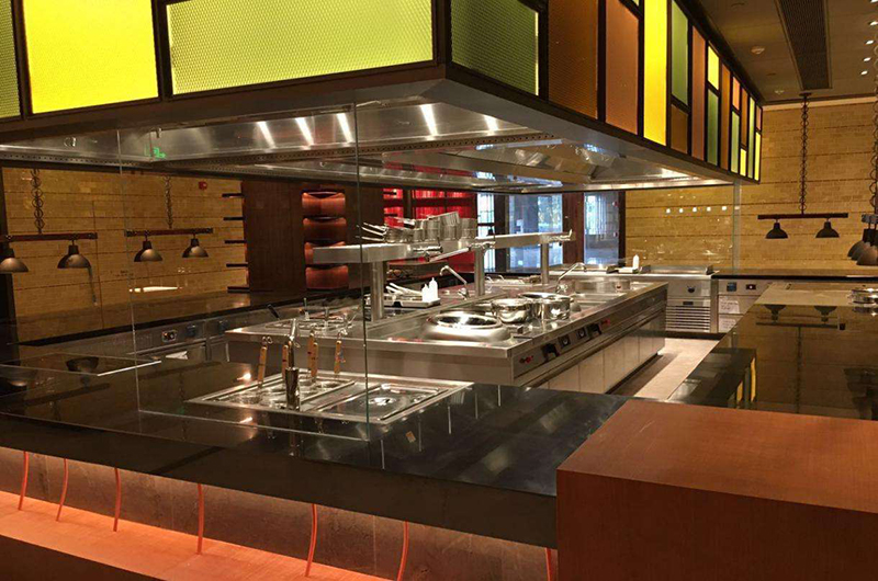 另外位于26樓的萬(wàn)福零點(diǎn)中餐廳共計(jì)28個(gè)中式餐廳包廂,主推菜系為湘菜丶粵菜,根據(jù)不同的菜系的特點(diǎn)我們對(duì)設(shè)備進(jìn)行精確選型,意在還原不同菜系的正宗口味。26樓整層為回字形結(jié)構(gòu),在廚房區(qū)域的設(shè)計(jì)上考慮到出餐的時(shí)效性,設(shè)計(jì)師將廚房設(shè)計(jì)在包廂的對(duì)面區(qū)域,既能消除廚房區(qū)域的噪音,也能保證出菜速度。我們?cè)趶N房區(qū)域的布局以及排煙系統(tǒng)又進(jìn)行精確優(yōu)化,最大程度降低了廚房?jī)?nèi)的噪音,為公共區(qū)域提供一個(gè)安靜的環(huán)境。